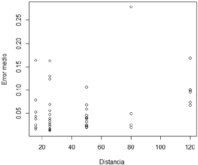 Haciendo uso del postulado donde las mediciones obtenidas entre targets son independientes y, asimismo, entre los diferentes tipos de escaneo, se utilizó el análisis de MLG (López & Ruiz, 2011) para ajustar un modelo al error medio (media de las distancias euclidianas entre las coordenadas observadas y las teóricas) obtenido para cada escaneo en cada target (variable respuesta), teniendo como covariables el ángulo, la distancia y, claro está, el target (Yoshimura, Date & Kanai, 2016).