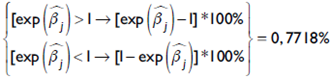 es decir [0,00033, 0,015], al sacar el exponencial a los límites se tiene que el intervalo queda dado por [1,00033, 1,01515], a partir del cual se concluye que por cada metro adicional en la distancia del escáner el error medio esperado aumentará entre 0,033% y 1,5%.