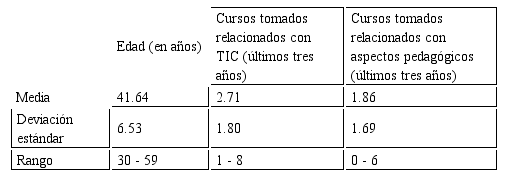Los aspectos más relevantes que surgen a partir de la información brindada por el profesor y complementada con la revisión de las propuestas tiene que ver con la planeación de la práctica docente, si bien los profesores estiman tener en promedio entre uno y dos cursos formativos sobre aspectos pedagógicos, la observación del grupo y los documentos entregados indican deficiencias al desarrollo de su propia planeación. Por otra parte, los profesores prefieren la formación en temas relacionados con TIC que en temas pedagógicos (planeación, evaluación, etc.), de acuerdo con los datos de la encuesta.