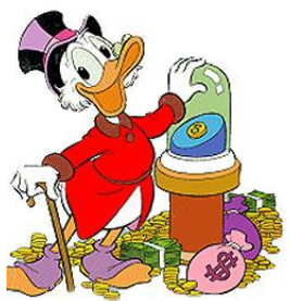 Porque o tio Patinhas é preocupado com o dinheiro. Não gosta de gastar o dinheiro, pelo contrário quer aumentar o que já tem [De graduandos em Jornalismo para graduandos em Economia].