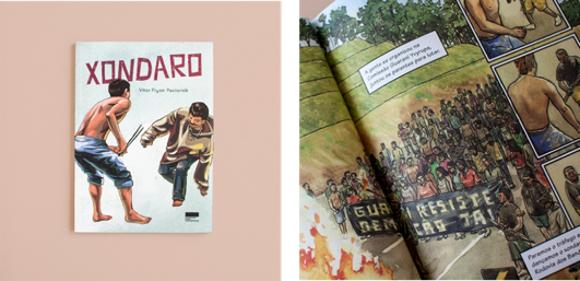 Quando abordado o tema, no entanto, em nossa experiência parte dos conhecimentos que a turma – 6º ano A – detinha sobre o tema foi a partir do livro Xondaro (Figura 6) de Vitor Flynn Paciornik - quadrinista e ilustrador, publicado pela Editora Elefante, que utilizamos no primeiro dia de aula para se trabalhar os conceitos geográficos.