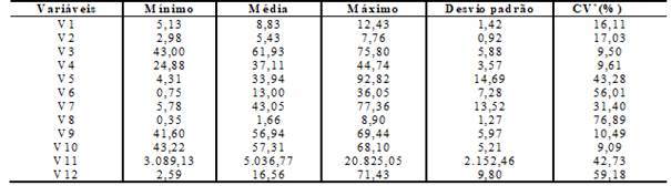 Com relação à razão de dependência (V10), Catarina, nos Sertões cearenses, obteve menor mínimo (43,22%) e Itatira (68,10%) o valor máximo, no Norte cearense, enquanto a média do semiárido cearense ficou em 57,31%.