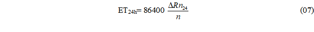 (08)Para obter o saldo de radiação 24 horas (Rn24) foi aplicada a seguinte equação: