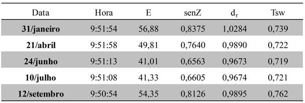 A tabela 1 traz os parâmetros de calibração do algoritmo SEBAL para os dias estudados no ano de 2011, correspondentes à cena Landsat 5 – TM, órbita 219 / ponto 70.