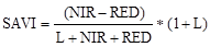 Proposto por Huete (1988), o SAVI possui a propriedade de minimizar os efeitos do solo de fundo no sinal da vegetação ao incorporar uma constante de ajuste de solo, essa constante é o fator L no denominador da equação que pode ter distintos valores.