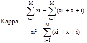 A acurácia das classificações foi determinada por meio da Exatidão global e do índice Kappa, ambos calculados com base em uma matriz de erros e utilizados como medida de concordância entre o mapa e a referência adotada para a estimativa da exatidão, neste caso, a imagem verdade e o trabalho de campo para a distinção de alguns alvos. A exatidão Global (EG) e o índice Kappa (k) foram calculados a partir da Equação 5 e 6, conforme descrito por (CONGALTON; GREEN, 1998).