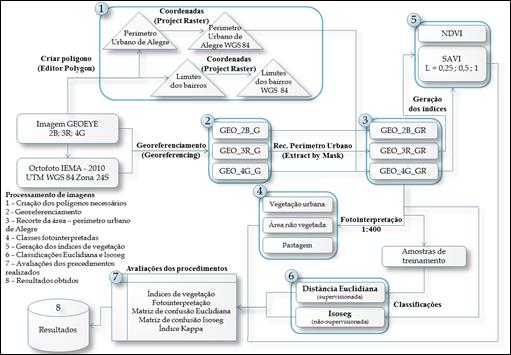 Os procedimentos metodológicos realizados para a mensuração da vegetação urbana do município de Alegre, ES, são sintetizados conforme fluxograma metodológico na (Fig. 2).