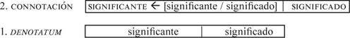 A este primer nivel, el producto de la interacción entre las vertientes mágica y realista de la imagen artística será de tipo connotativo. La razón es que el proceso semiótico mediante el cual un signo completo se convierte en significante de un significado añadido constituye, de por sí, una “dimensión diferente” del denotatum primordial.