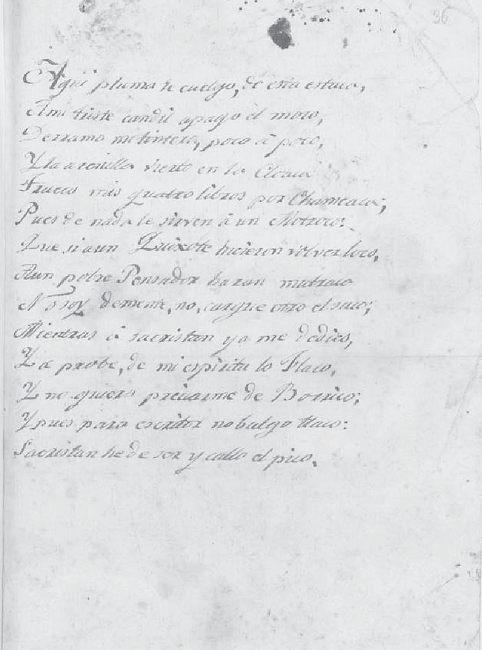 Fernández de Lizardi desde luego fue minucioso conocedor del Quijote, con cuyo protagonista llegó a identificarse, como la crítica ha puesto de relieve. Así, Ozuna Castañeda, quien nota que su quijotesco soneto lo escribe “en el primer tropiezo de su carrera literaria” 25. El manuscrito de la Biblioteca Nacional de España, aquí en facsímil, reza así: