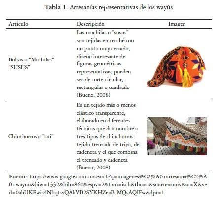 Según Bueno (2008), el tejido es una labor de los artesanos wayús, esta es combinada con las demás actividades cotidianas, en los ratos libres, en las visitas y cuando van de viaje. El tejido ha sido siempre una tradición entre los wayús. Durante siglos se han conservado ritos especiales donde se inicia al adolescente en el arte de tejer dibujos, es digno del mayor respeto; poseer muchas y finas piezas tejidas es símbolo de poder y prestigio.
