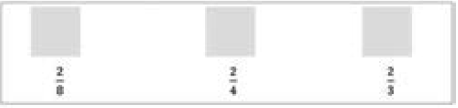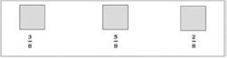 M: Copien lo que está en el pizarrón, hijos, aquí estamos haciendo tres cuadros, y cada cuadro se está dividiendo en ocho partes, solamente que el numerador es el que está cambiando. Tenemos igual denominador y diferente numerador. (…) En el primero tenemos 3/8, esta figura se divide en ocho partes, ¿cuántas partes vamos a colorear?