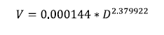 Abstract: Mathematical equations were fitted to estimate the total volume in madrono trees (Arbutus spp.), in the region of Pueblo Nuevo, Durango. 120 trees of different diameter categories were demolished, the variables normal diameter (D), total height (H), diameter of the base (DB) and crown diameter (DC) were measured. The volume of each tree was obtained with the xylometer. 20 models of one input and 15 of two or more inputs were tested for to predict the volume, the equations adjustment was by Ordinary Least Squares and Weighted Least Squares. For the selection of the best model, the RCME, R2 and the level of significance of the parameters were taken into account. The best model of one input was the M2 (allometric of Berkhout), which considers the independent variable normal diameter, the two inputs M21 (Schumacher-Hall), that consider independent variables the normal diameter and total height.