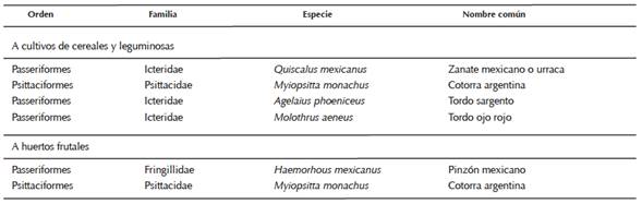 Para los sembradíos de maíz, en particular, los zanates mexicanos (Quiscalus mexicanus) fueron considerados por 72% de los encuestados como los más abundantes y perjudiciales, ya que afectan los cultivos desde la siembra de semillas hasta la formación del elote; por el contrario, las cotorras fueron reconocidas por ser menos abundantes y dañar en menor intensidad estos cultivos, puesto que sólo forrajean cuando las mazorcas están maduras.