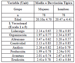 Keywords: Vocational interests, gender studies, college students (Education Thesaurus Unesco- OIE).
