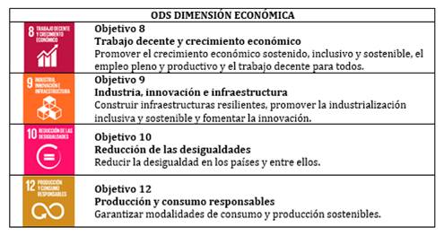 Los ODS presentan una estrecha relación entre sí que visualiza su indivisibilidad, en tanto que la afectación de uno puede incidir directamente en el cumplimiento de otro. Sin perjuicio de ello, y solo para efectos académicos, es posible organizarlos temáticamente, según la preponderancia que en cada uno adquiera la dimensión económica, social o medioambiental, teniendo presente que en todos el elemento ético es transversal (véase Tabla 1). Primero, porque como se ha indicado, el desarrollo se distribuye de manera desigual entre regiones, entre países y en el interior de los mismos; también porque la concentración del poder (económico y en algunos casos, político) radica en unos pocos, lo que exige la adopción de medidas que favorezcan una distribución más equitativa de los recursos y de las decisiones; y porque dado el contexto socio-ambiental y la amenaza del cambio climático, es preciso actuar responsablemente para asegurar la supervivencia de la especie humana y los diversos ecosistemas, en el presente y en el futuro, pues lo que está en juego es justamente nuestra propia subsistencia.
