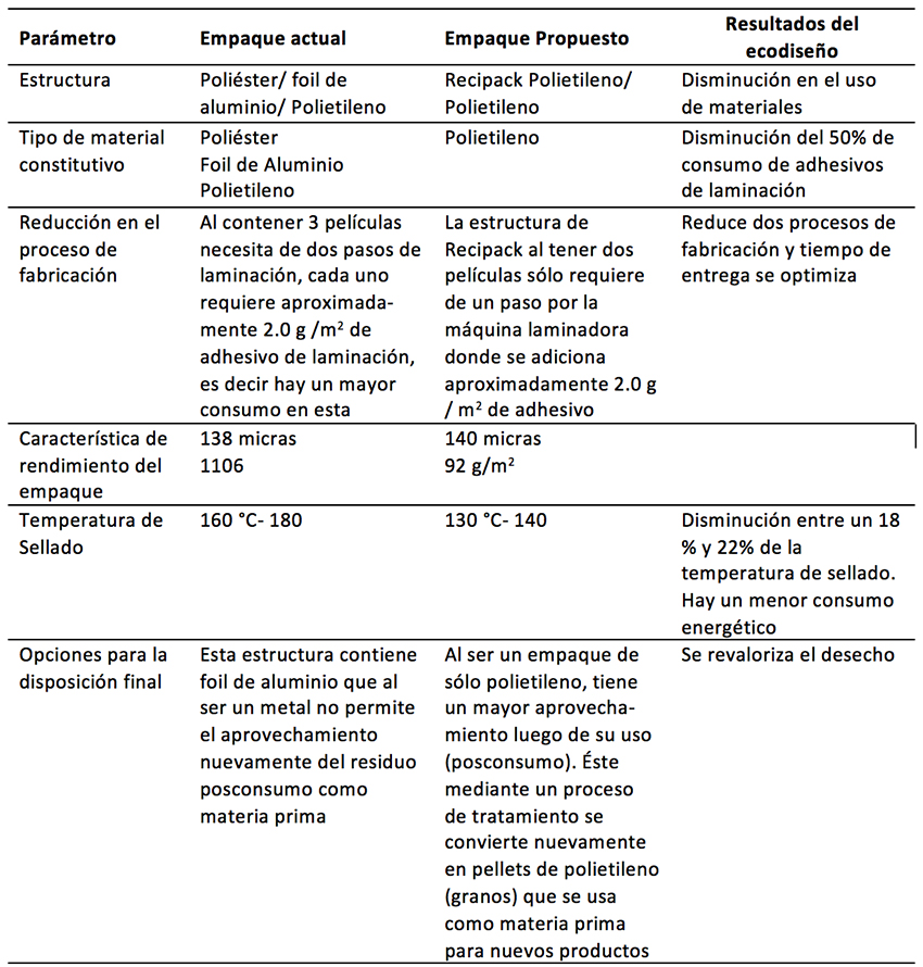 Para la formulación de la propuesta de cambio de empaque se realizó un análisis de metodologías de eco-diseño, reciclaje y economía circular (Moreno, Figueroa, & Montoya, 2018; Moreno & Montoya, 2011; Romero, 2009).