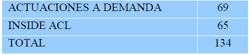 En este caso, los contenidos se reparten casi en un 50% entre las actuaciones y el Inside ACL.