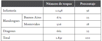 Dado que el conflicto bélico determinaba la salida de la mayor parte de las tropas veteranas hacia la frontera luso-brasileña, en Buenos Aires el peso numérico de los blandengues aumentaba al 60 % de las fuerzas regulares disponibles.