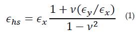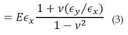 Donde E corresponde al Módulo de Young, ex y ey representan la deformación en dirección circunferencial y axial respectivamente y v representa el módulo de Poisson.