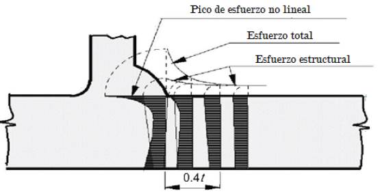En las uniones soldadas se han definido las zonas que concentran en mayor medida los esfuerzos, producto de solicitaciones mecánicas, y que en consecuencia desarrollan fisuras o grietas. El Instituto Internacional de Soldadura o IIW (International Institute of Welding) ha clasificado las diferentes zonas críticas de acuerdo al tipo de unión, así: Tipo A o Soldadura ubicada en la superficie de la placa y Tipo B o Soldadura ubicada en un borde de la placa. Dado que la zona crítica se ubica al pie de la soldadura, esta se denomina esfuerzo de zona crítica al esfuerzo estructural en dicho punto [5].