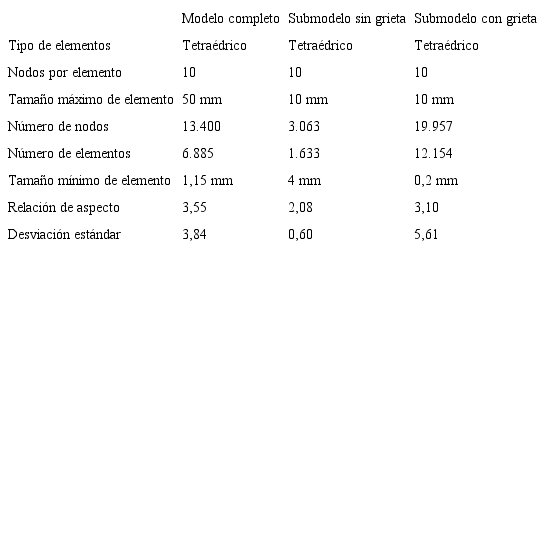 Los parámetros de malla utilizados en el modelo completo y en los dos submodelos generados se resumen en la Tabla 2.