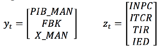 Para nuestro caso, el vector de variables endógenas y exógenas consideradas fueron las siguientes: