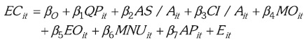 Por su parte, en la tabla 2, se presenta la caracterización de las variables con su nombre, abreviación y fórmula para el cálculo. Esto es necesario para plantear el modelo que se propone en el panel no balanceado de datos y, por ende, en la parametrización pertinente del software empleado en el proceso de investigación.