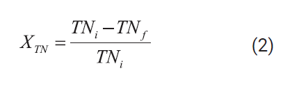 [2]Where TOCi and TNi are the initial concentration of total organic carbon and total nitrogen in the leachate after the dilution with 30 wt% hydrogen peroxide solution and TOCf and TNf are the corresponding concentrations in the reactor effluent.
