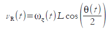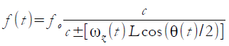 Respecto al sistema laboratorio la velocidad del observador es nula y la velocidad relativa viene dada por la ecuación (8). Usando lo anterior, la frecuencia Doppler para el péndulo es:
