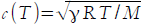 es el coeficiente adiabático del gas, R es la constate universal de los gases, T es la temperatura absoluta y M es la masa molecular del gas. Una aproximación útil de esta relación para aire seco y temperaturas cercanas a la temperatura ambiente es: