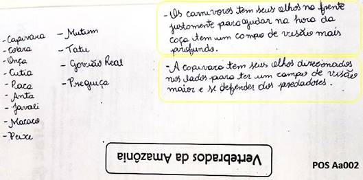 Perspectiva de reconocimiento: desde esta perspectiva los alumnos reconocen que hay gran variedad de vertebrados en el bioma amazónico o realizan una lista con los nombres comunes de los que conocen (figura 6).