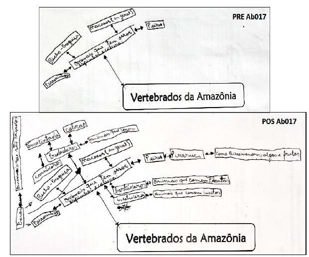 Se realizó un registro fotográfico de los PMM de cada alumno y se asignó un código aleatorio a cada uno. Los alumnos participaron en las dos partes de las actividades de la exposición, con una duración aproximada de 120 minutos. Una vez finalizada la visita, se entregó a cada alumno el mismo PMM que había realizado antes de la visita, dando las siguientes indicaciones: a) Por favor, lea las ideas que usted expresó sobre la temática «Vertebrados de la Amazonía»; b) Considerando su experiencia durante la exposición, siéntase libre de modificar, ratificar, retirar, o añadir los aspectos sobre el tema que fueron significativos para usted. Nuevamente se realizó un registro fotográfico de los PMM para facilitar la comparación entre las respuestas antes y después de la visita.