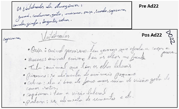 En la lectura de esas frases en los PMM-Pre, se realizó un análisis de dos aspectos que son relevantes sobre el conocimiento previo de los alumnos, en relación a la diversidad de vertebrados de la Amazonía: a) la mención de animales vertebrados nativos o exóticos; b) la identificación de ideas equivocadas sobre los vertebrados desde una perspectiva científica.