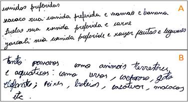 En relación al parámetro extensión, primeramente se realizó el conteo de las palabras. Fueron contabilizadas todas las palabras mencionadas por los alumnos, incluyendo las preposiciones, conjunciones, interjecciones, artículos y pronombres. En el caso de sustantivos, verbos o adjetivos repetidos en una misma oración, estos se contabilizaron como uno. Ejemplo: «El Pirarucu come peces pequeños y come frutas». En este caso, la palabra come fue contabilizada una sola vez.