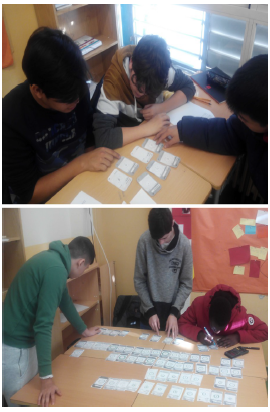 Se proponen al alumnado tres retos, que deben llevar a cabo mediante investigación, comparando las tarjetas entre sí: 1) descubrir qué significa cada una de las informaciones que aparecen en las tarjetas; 2) encontrar un modo lógico de ordenar las tarjetas; 3) descubrir qué tarjetas faltan y predecir qué informaciones deberían llevar. A lo largo de varias sesiones de investigación, los estudiantes trabajan en equipos de 3 alumnos, comparando tarjetas y discutiendo entre sí, e incorporando otras tarjetas de elementos que se proporcionan al alumnado paulatinamente, hasta llegar a 56 tarjetas.