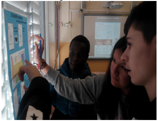 La mitad de los equipos desarrollaron esta parte tal como se esperaba (descubriendo nuevos elementos sobre la Tabla creada por ellos mismos con elementos ficticios) mientras la otra mitad, espontáneamente, prefirió identificar sobre una Tabla Periódica real los elementos que se correspondían con los que faltaban en su tabla. Durante el congreso (Figura 4), se llevó a cabo una actividad de coevaluación en la que los distintos equipos se evaluaban entre sí por su capacidad de justificar sus conclusiones en relación a la ubicación de los elementos desconocidos en la tabla. En las conversaciones durante el congreso se detectó una buena comprensión del papel del número atómico, electronegatividad y valencia en relación con la configuración electrónica y la posición en la tabla.