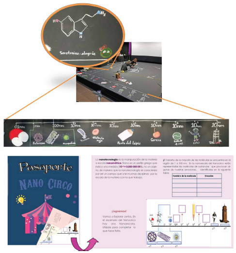 Como parte de la planificación de actividades no formales para la comunicación y enseñanza de la Ciencia, algunos trabajos exitosos se enfocan en el uso de las Artes escénicas. Entre estos, aquellos que integran las artes del circo y del teatro para llamar la atención y motivar a niños, jóvenes y adultos al aprendizaje. Un ejemplo es el estudio Kerby y colaboradores (2010), quienes describen un espectáculo que emplea las artes circenses en la enseñanza de la Química. Igualmente, el trabajo de Colley (2012) que sugiere la integración de las artes escénicas como herramienta innovadora para crear un ambiente idóneo para el aprendizaje. Otros autores como Chapela y Garritz (2013) proponen actividades similares, pero desde una perspectiva más inclinada a la divulgación de la ciencia. Los autores sugieren este tipo de estrategias no solo para formar nuevos científicos sino para combatir el analfabetismo científico. No obstante, estudios como los descritos son muy pocos y tienden a enfocarse exclusivamente en la comprensión del tamaño y la escala nanométrica. Tal es el caso de la exhibición interactiva Nano-Aventura del Museo Exploratorio de Ciencias de la Universidad de Campinas, en Brasil, la cual se desarrolla alrededor de dos videos narrados y cuatro juegos (Murriello y Knobel, 2008). Igualmente se describen en la web algunas muestras artísticas y proyectos de divulgación de la NCT, lamentablemente sin resultados publicados en revistas académicas que permitan realizar comparaciones efectivas. Dentro de estas iniciativas se pueden resaltar 1) la presentación “nanomandala”, realizada en el 2004 por la artista Victoria Vesna y el científico James Gimsewsky, en donde nuevamente se alude, científicamente, a los conceptos de tamaño y escala, y 2) la obra NANOLAND, ideada por el Dr. Jordi Díaz de la Universidad de Barcelona, en la que con ayuda de payasos, marionetas y danzas, se presentan desde el 2007 diferentes conceptos de la NCT, como el tamaño, escala, confinamiento cuántico y superhidrofobicidad, entre otros.