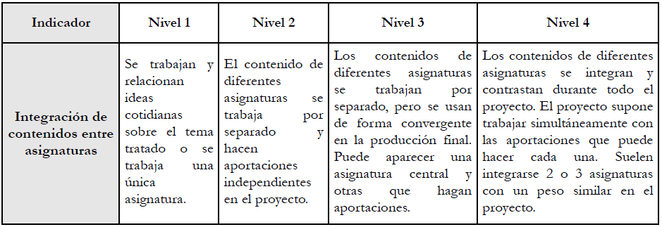 Otra de las tensiones que aparecen en el análisis de las discusiones trata la dificultad de integrar conocimientos de distintas asignaturas, con diferentes intereses y objetivos, en un mismo proyecto. Aunque en ambos proyectos presentados las ciencias toman el papel protagonista, los participantes hicieron valoraciones que ponen de manifiesto la dificultad de profundizar en ciertos contenidos respetando las constricciones que generan otras asignaturas presentes en el proyecto. Por ejemplo, dos participantes (C y D) comentaron su experiencia sobre la participación en el diseño de un proyecto entendido como STEAM (incluyendo al enfoque STEM la A de Arte) donde la discusión sobre cómo trabajar el concepto de evolución se veía limitada por la asignatura de artes plásticas, mencionando que «pierdes un poco el fenómeno que quieres estudiar». Esta tensión se recoge en el indicador de Integración de conocimientos entre asignaturas de la rúbrica (Tabla 3), donde, a través de sus niveles de progresión, se valora más la calidad de las conexiones entre las asignaturas (aunque sean menos) que la cantidad. Cabe destacar la importancia de esta discusión en el ámbito STEM, donde frecuentemente se prioriza la integración de disciplinas frente la profundidad en cada una (Couso y Simarro 2020).