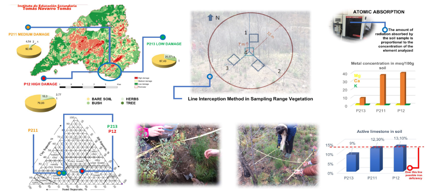 Posteriormente, se recordó que los datos han de ser contrastados con el trabajo de campo (figura 5) y se organizó una salida a la zona de estudio. Para ello, se identificaron tres parcelas de 30*30 m.: P12, P211 y P213[14], fácilmente accesibles. Cada una de ellas estaba en una zona clasificada como alta, media y baja resistencia regenerativa, respectivamente.