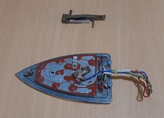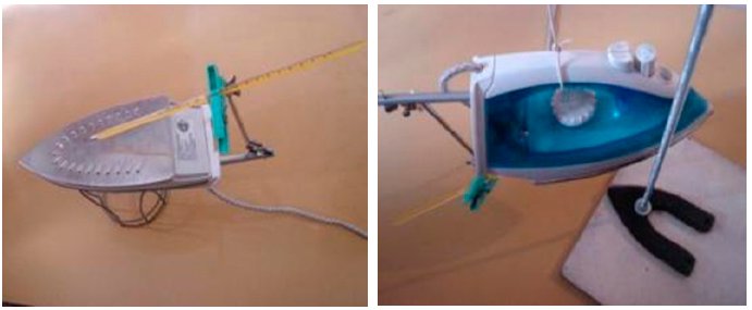 En la pregunta 2, se detectó desconocimiento sobre la existencia de un bimetálico, aun cuando resulta bastante evidente que alcanzada cierta temperatura algún mecanismo interrumpe la corriente eléctrica. Aquí el docente debió explicar que se hace uso del diferente coeficiente de dilatación de dos metales distintos, lo que curva el elemento que hace de interruptor. En esta etapa resultó interesante descubrir que no resulta obvio cómo opera el mecanismo de regulación de la temperatura, aun para estudiantes avanzados de la carrera. Varios de los asistentes suponían que se trataba de un sistema de resistencia variable, a modo de reóstato (se explicó lo inviable que resulta para el caso). Se mostró un dispositivo llevado para la ocasión (figura 2).