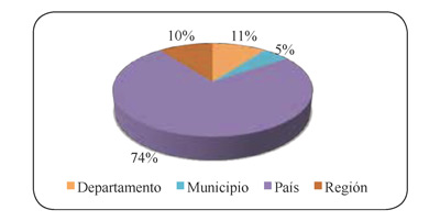 o a nivel de localidad, municipio, país u otro. En las investigaciones, (Gráfica 10), el nivel país fue el de mayor empleo (74 %).