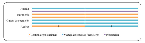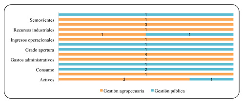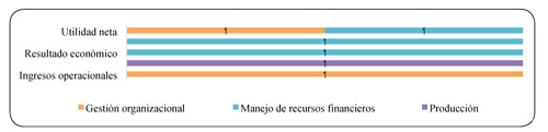 Frente a las variables de entrada (gráfica 14), se tienen los gastos operacionales, los activos y los recursos; donde las unidades empresariales, como los grandes productores, campesinos o minifundistas, deben emplear la cantidad óptima de insumos o recursos para obtener una mayor producción y menores costos de producción. No obstante, los pequeños productores no lo logran (Perdomo & Mendieta, 2007).