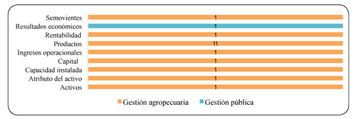 Para la primera sección CIIU los objetivos identificados fueron gestión agropecuaria (16) y gestión pública (8), lo que ratifica el que la Metodología DEA pretende lograr una eficiente gestión (Maza, Navarro, & Puello, 2012).