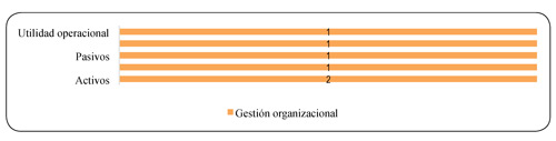 En cuanto a las salidas (gráfica 33), se tiene que las variables: riesgos por eventos, precios de factores de producción, pérdidas y activos, están relacionados con el objetivo de gestión organizacional. Esta relación, con las compañías de seguros, permite evaluar de una forma cuantitativa los riegos del negocio, debido a la gran competitividad que posibilita permanecer con una posición ventajosa en el mercado (Londoño, 2004).