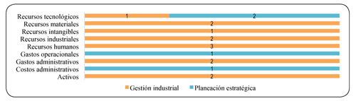 En conclusión, las variables de entrada asociadas a recursos humanos, recursos tecnológicos, recursos industriales y recursos materiales son las más representativas en esta sección (gráfica 20).