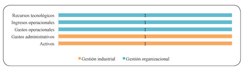 En cuanto a las variables de entrada (gráfica 30), recursos tecnológicos y activos influyen en la eficiencia de este tipo de empresas. Por lo que permite concluir que orientan su eficiencia hacia determinadas variables, como son el uso de redes, los activos y otras; hacia la variable personal; reflejando la preocupación por cumplir con la carga laboral y pensional (Gutiérrez, 2007).