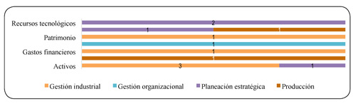 Luego, en las secciones C y C-G se tiene como objetivo apreciable la gestión organizacional, que está presente en diez investigaciones que se pueden observar en las gráficas 16 y 17, tal como lo afirma Cayon (2001), donde expone que para medir la rentabilidad real de una compañía como una función del costo de capital, un factor relevante son los activos.