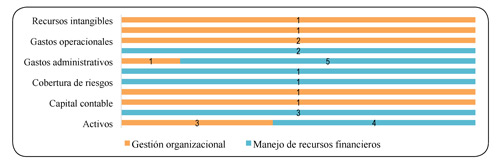 El objetivo de manejo de recursos financieros es el más relacionado en esta sección, enfocándose en siete estudios. Con los planteamientos de Fiallos (2003), donde los bancos deben hacer un uso razonable de sus insumos (gastos administrativos, gastos de personal, activos fijos netos y capital) para poder ser eficientes y competitivos en el mercado. El manejo de los recursos en estas organizaciones, está relacionado con la eficiencia en beneficios y la eficiencia en costos, entendiéndose la primera como la capacidad que tiene la firma bancaria para generar utilidades, y la segunda, mide la capacidad que tienen las firmas bancarias para generar su producto al mínimo costo posible; y es precisamente, donde las instituciones bancarias presentan problemas para controlar sus costos reflejando condiciones de competencia ineficientes (Badel, 2002).