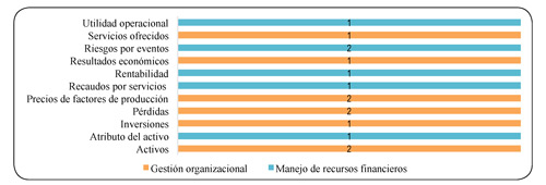 Ahora, las salidas (gráfica 28 y 29), tiene también una coincidencia en el objetivo que corresponde a la gestión organizacional. Este es considerado tanto en la administración de los recursos como en las ventas y los ingresos que generan (Cavadia & Maldonado, 2009).