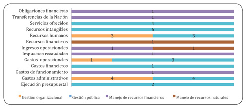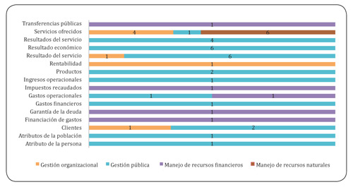 La gestión pública es el objetivo más relacionado con esta sección presente en trece investigaciones. Donde, cinco están enfocadas al desempeño fiscal en departamentos y municipios del territorio nacional, buscando analizar la eficiencia con que invierten los recursos asignados para ciertos rubros específicos, como las transferencias para salud, educación y saneamiento básico (Pérez, 2005). En este sentido, la inversión de recursos representada en las transferencias, tienen un papel preponderante en la eficiencia de la gestión pública, para medir los niveles de eficiencia necesarios cuando se contrastan los insumos con los productos (León & Ramírez, 2007).